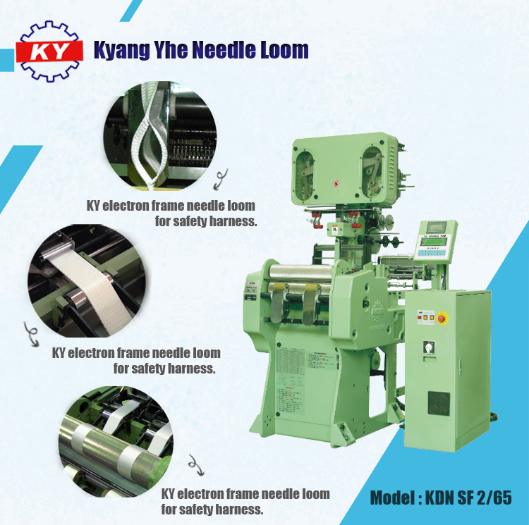 KDN SF tie back lanyard loom is for producing shock absorbing lanyard, the weft density is available from 3.5cm to 36.5cm. Electron frame needle loom has attached electronic forms which with grounded wallboard is more solid to ensure steady running with the yarn transmission of middle pillar type, easy to operate.